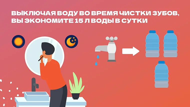 Не обязательно, чтобы вода из крана текла всё время, пока вы чистите зубы, моете посуду или принимаете душ. Закрывайте кран, если она вам не нужна. Иначе много воды уходит впустую.